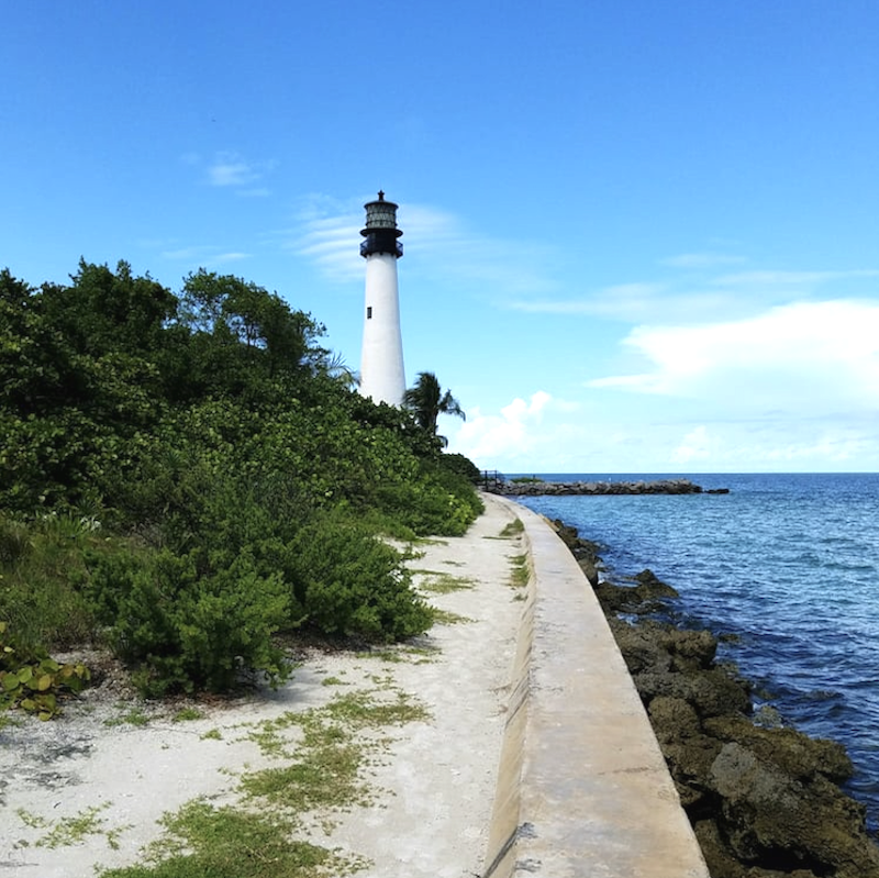 Connected to the mainland via Virginia Key and the causeway, the island has two main trail areas, one in Crandon Park in the north and the other in Bill Baggs Cape Park in the south. The northern park's main trail runs from the causeway down about 2.5 miles on trail-side oceans to the island's residential area. The southern park offers a perimeter along the beach itself, for a little more than three miles.