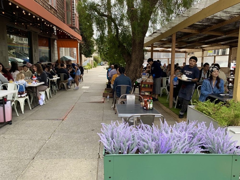 Customers enjoying brunch outside Kitchen Story. | Photo: Christine L./Yelp
